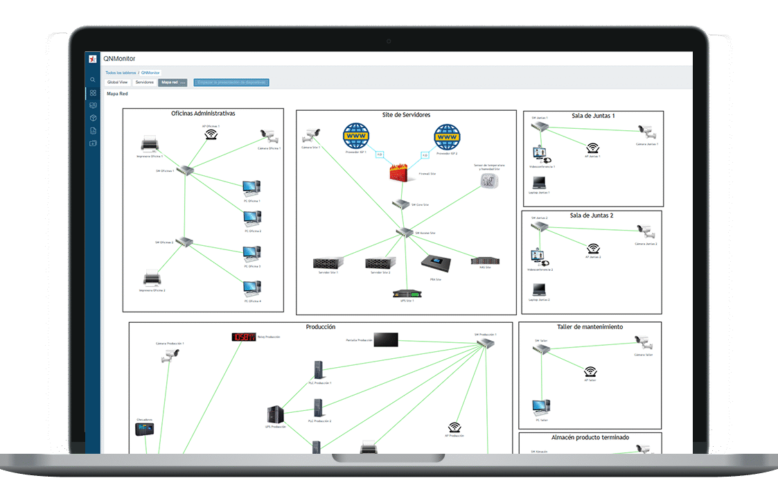 Explora dashboards, mapas y alertas simples y claras. La falta de visibilidad cuesta recursos y tiempo. Con QNMonitor ganas control y eficiencia.